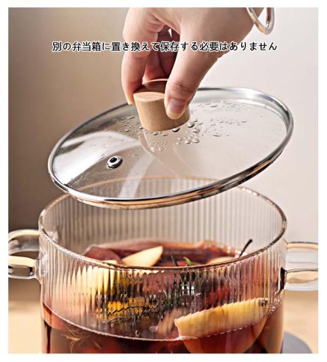 | 美しく洗練されたデザインは、加熱中の食材の具合や保存されている食材が一目瞭然。 強度・耐久性に優れ、強度・硬度の高い高シリコンボロンガラス製で、直火で直接加熱できます。 フタを開けなくても中が確認できるので、ふきこぼれ、空焚きを防げます。 エレガントなガラス製のデザインで食卓を一層華やかにします。 ガラス鍋は直接調理してもいいし、調理後にそのまま食卓に置いても冷蔵庫に入れてもいいです。 別の弁当箱に置き換えて保存する必要はありません 使用可能:直火・オーブン・電子レンジ ご注意:蓋はオーブンや電子レンジに入れないでください。 | |