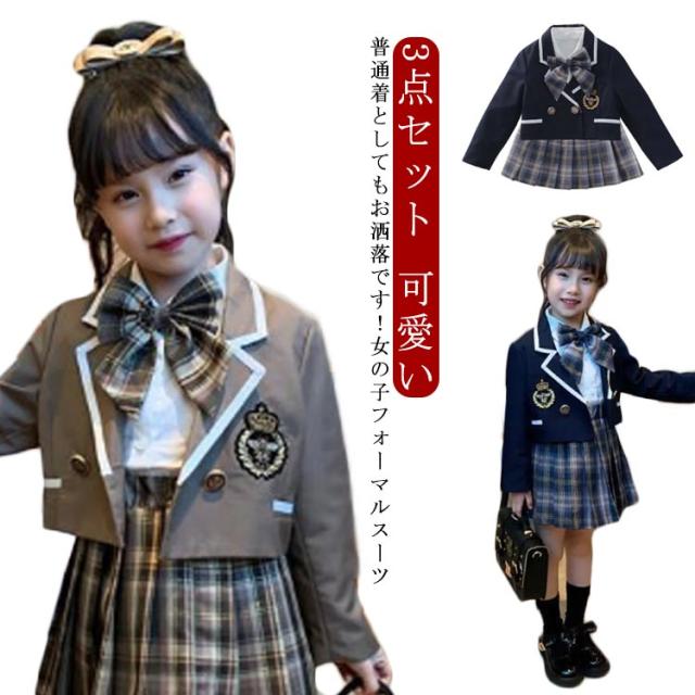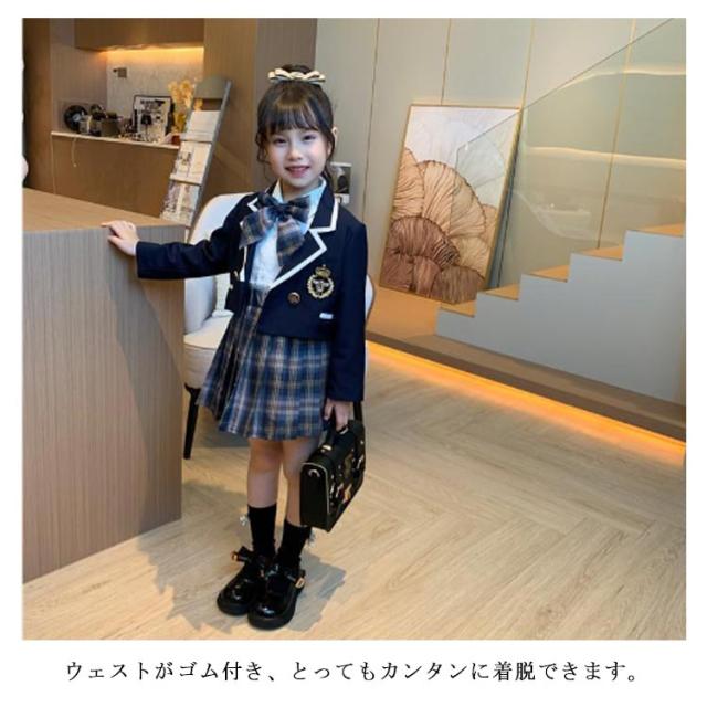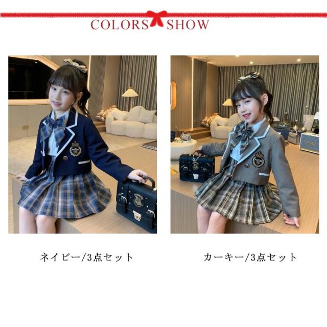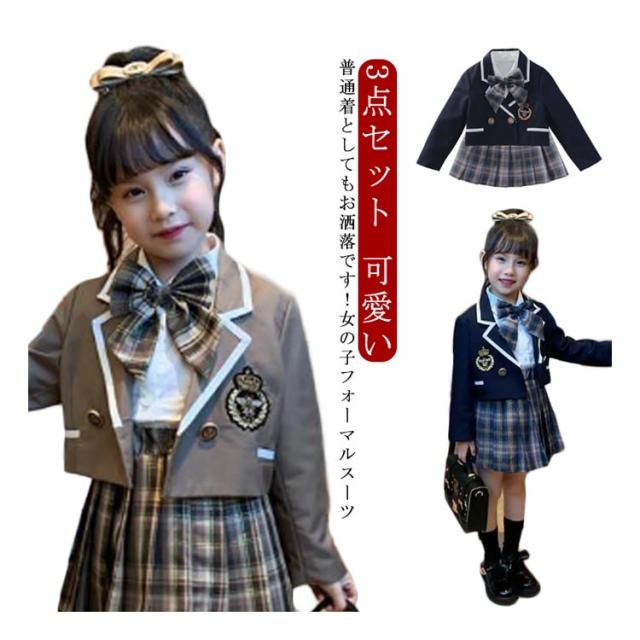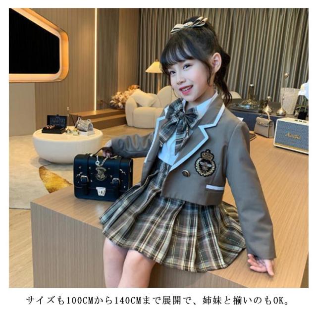 子供服 フォーマル 女の子 スーツ スカートスーツ 3点セット ジャケット プリーツスカート リボン 入学式 卒業式 スーツ 女の子 ジュニア 子ども服 ガールズ キッズ 七五三 発表会 子ども チェック柄 セットアップ 春 可愛い ギフト 送料無料
