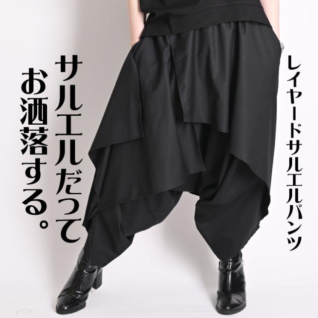 サルエルパンツ メンズ レディース ワイドパンツ アシンメトリー 変形 レイヤード アラジンパンツ 個性的 rp60955