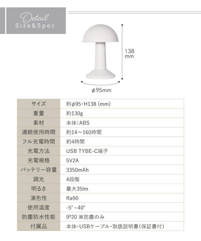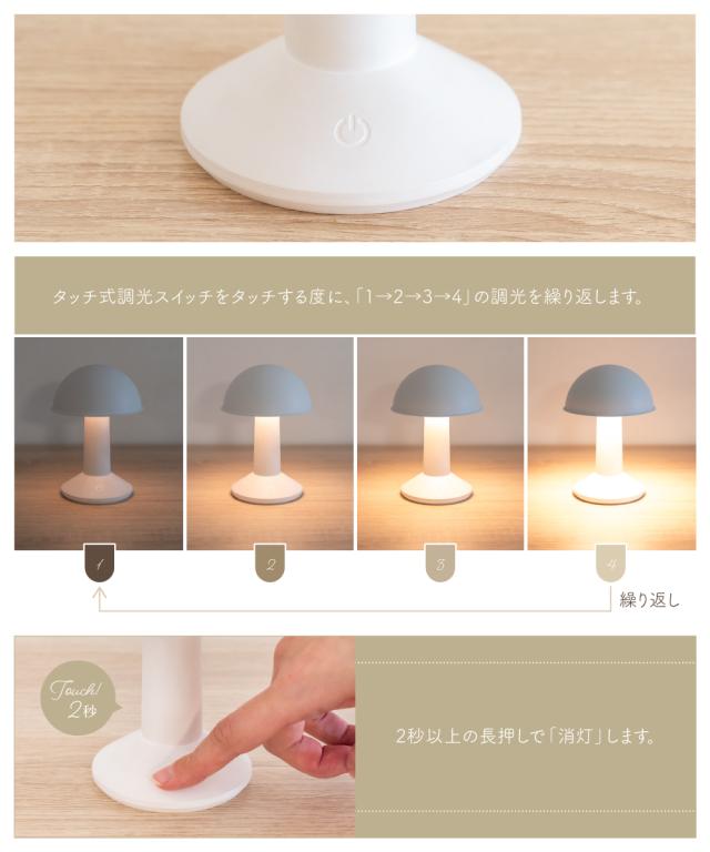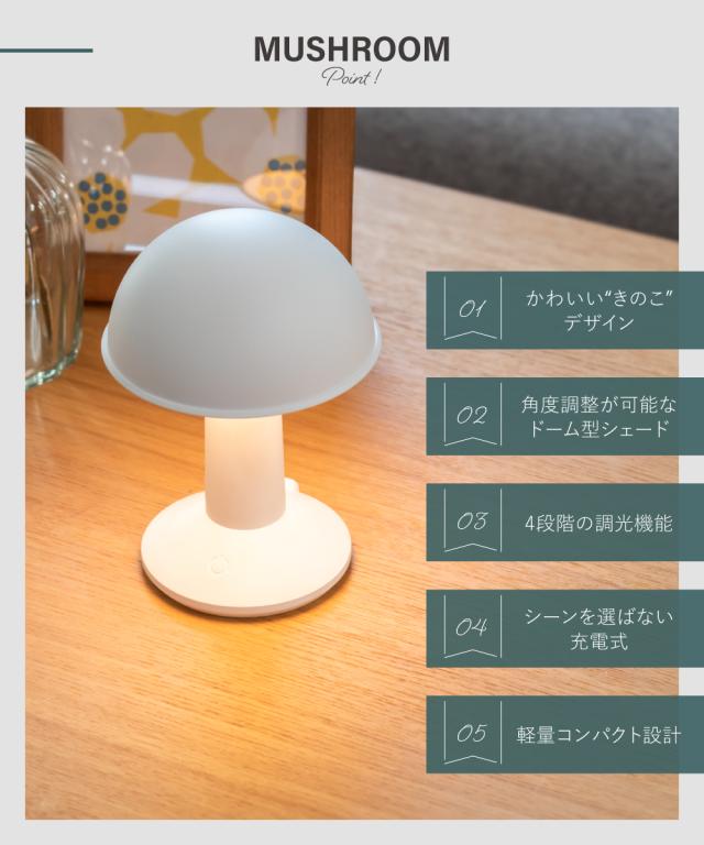 【Tubicen】 テーブルランプ おしゃれ ライト ランプ LEDライト ポータブルライト LED テーブルライト リビング 寝室 玄関 北欧 ナチュラル モダン 間接照明 ホワイト コンパクト 角度調整 軽量 コードレス 調光 インテリア Tubicen MUSHROOM トゥビセン マッシュルーム