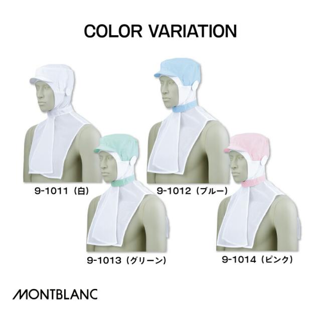 住商モンブラン 衛生帽子 衛生キャップ 頭巾帽子 ケープ付 白衣 食品工場 食品加工 衛生管理者 飲食店 厨房 調理実習 給食 作業用 ユニフォーム 制服 帽子 ホワイト ブルー グリーン ピンク ネコポス sm-9-1011