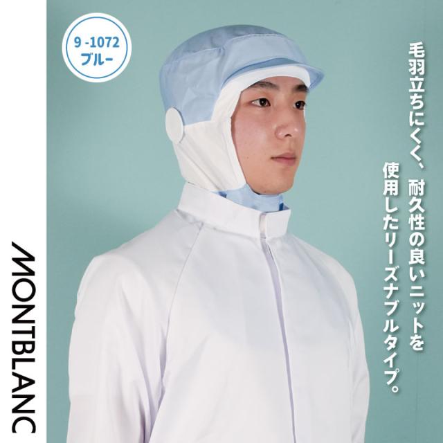 住商モンブラン 衛生帽子 9-1071 9-1072 9-1073 毛羽立ちにくく、耐久性の良いニットを使用したリーズナブルタイプ。 ケープ付 メガネ差し付 マスク留め付 制電 男女兼用 安価
