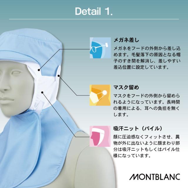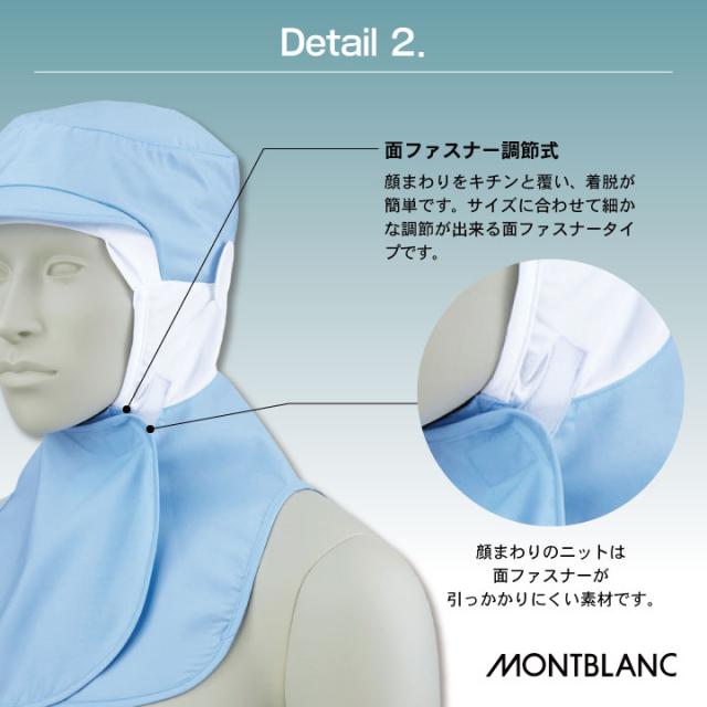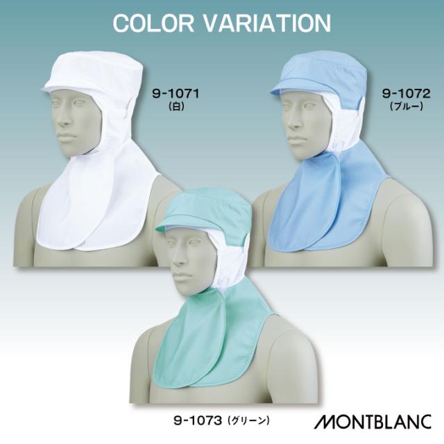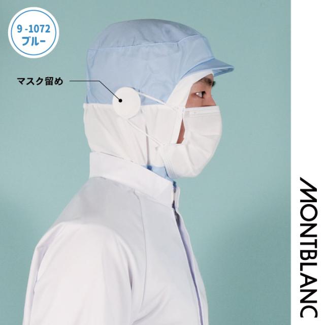 住商モンブラン 衛生帽子 衛生キャップ 頭巾帽子 ケープ付 白衣 食品工場 食品加工 衛生管理者 飲食店 厨房 調理実習 給食 作業用 ユニフォーム 制服 帽子 ホワイト ブルー グリーン ネコポス sm-9-1071