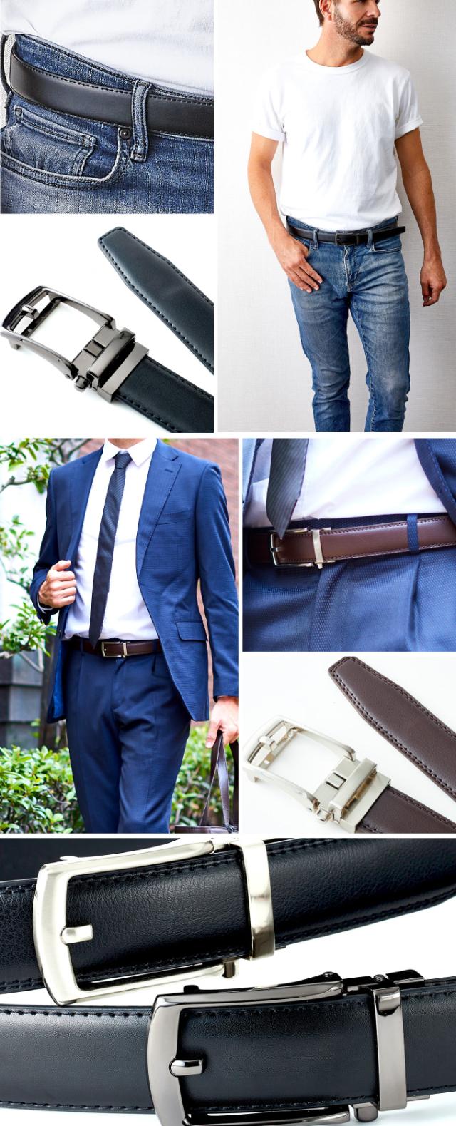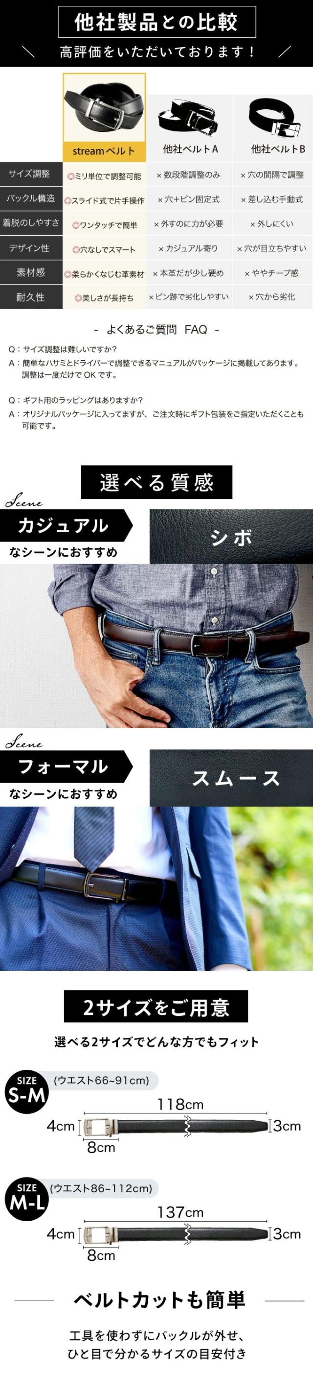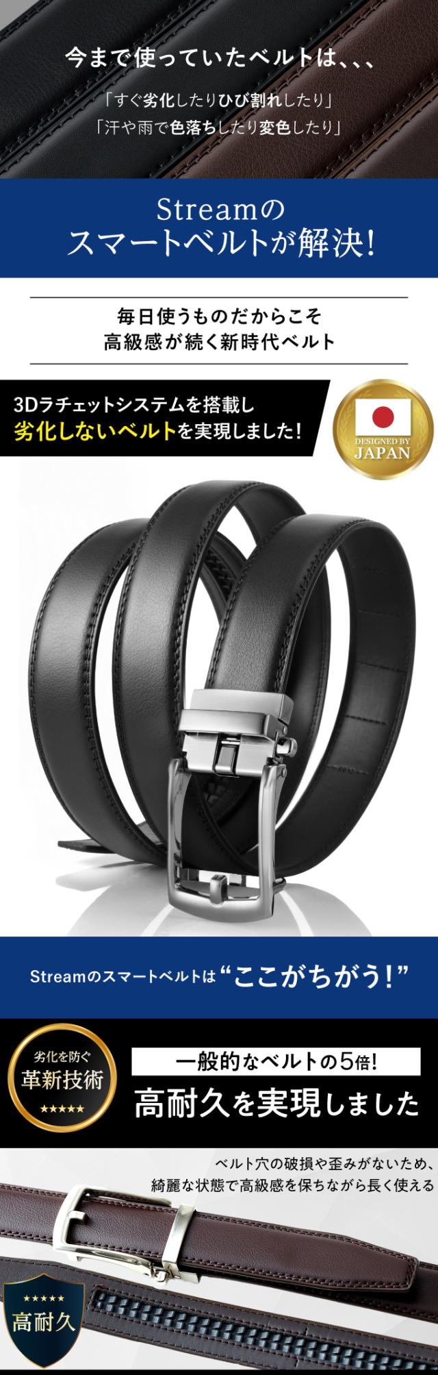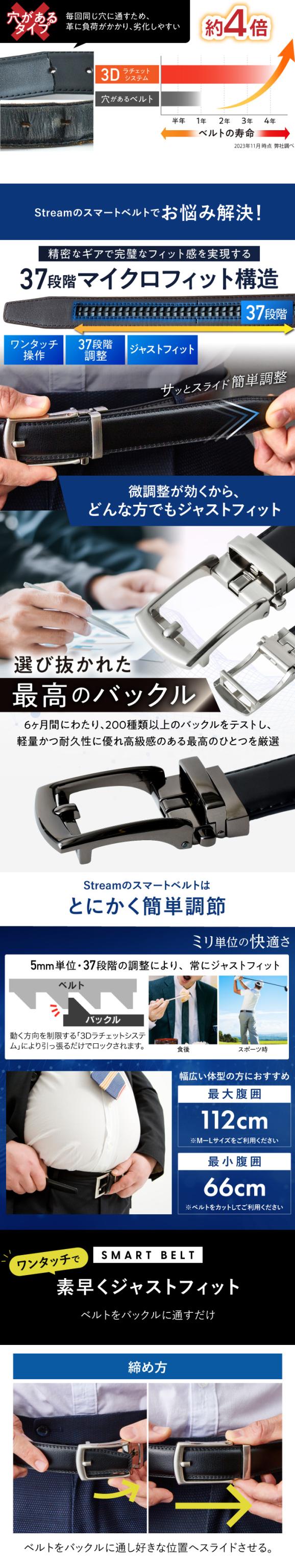 ベルト ボロくならない オートロック式 簡単調整 ワンタッチ 穴なし メンズ ビジネス カジュアル 本革 革 レザー 無段階 通勤 通学 STREAM
