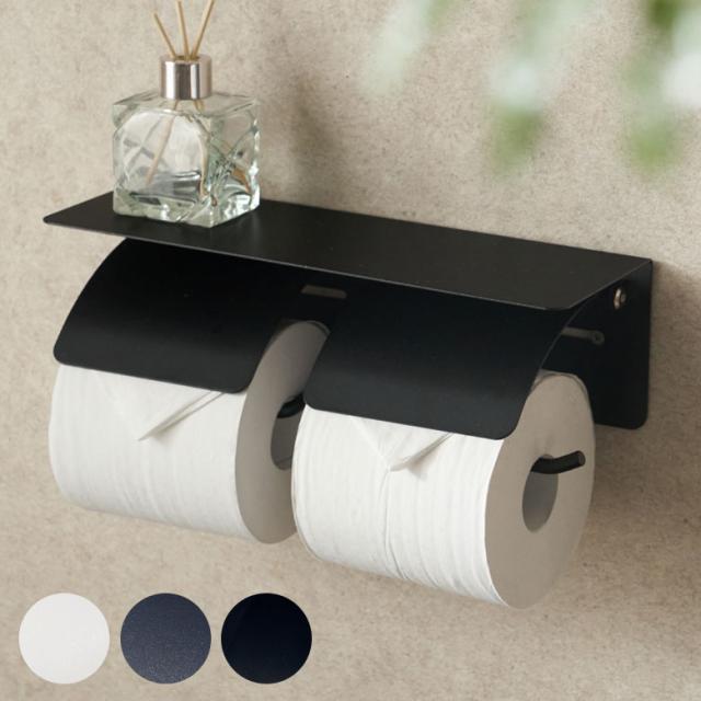 トイレットペーパーホルダー ダブル 2連 棚付き スチール 約 W 30cm D 11cm H 9cm ブラック グレー ホワイト トイレットペーパー ホルダー 収納 DIY シンプル ヴィンテージ フタ付き カバー付き おしゃれ [84304]