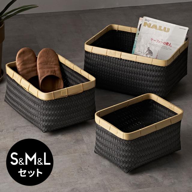 バスケット 3個セット かご 27.6L バンブー 竹 プラスチック 約 W 40cm D 30cm H 23cm ランドリーバスケット 耐水 レクタングル かごバスケット 収納 収納バスケット 洗濯物入れ 荷物入れ かばん入れ 小物入れ おしゃれ 北欧 雑貨 インテリア リゾート 西海岸 [set-14065]