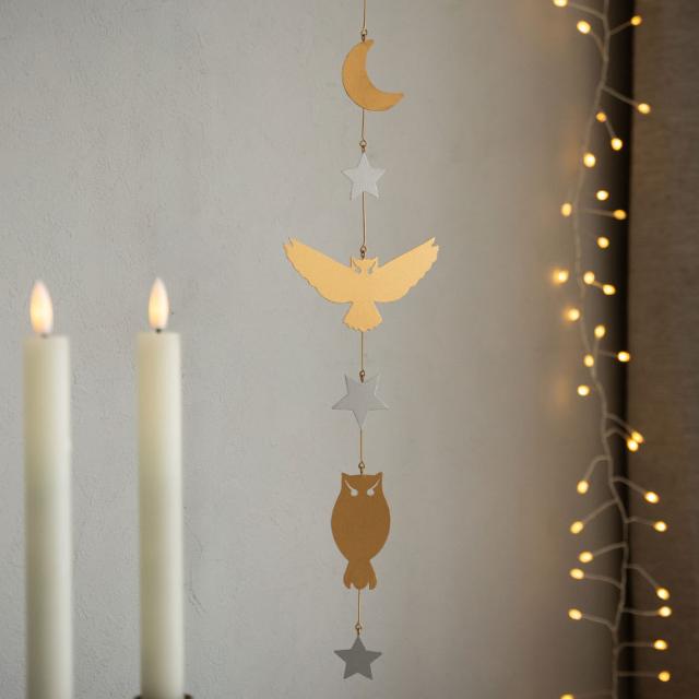 ガーランド フクロウ 星 月 オーナメント ブリキ 約 幅 5cm 高さ 37.5cm クリスマス ハロウィン デコレーション 飾りつけ 吊り下げ クリスマスオーナメント パーティー クリスマスデコレーション おしゃれ 北欧 シンプル インテリア リゾート 雑貨 西海岸 [94751]