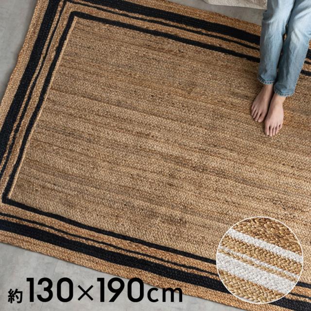 ラグ カーペット ジュートラグ 幅190cm 130×190 長方形 約 W 190cm D 130cm H 1cm ジュート マット インド製 麻 ネイビー ホワイト ライン ラグマット 室内 屋内 オールシーズン 春 夏 秋 冬 ナチュラル ボーホー BOHO おしゃれ 北欧 リゾート インテリア 西海岸 [34534]