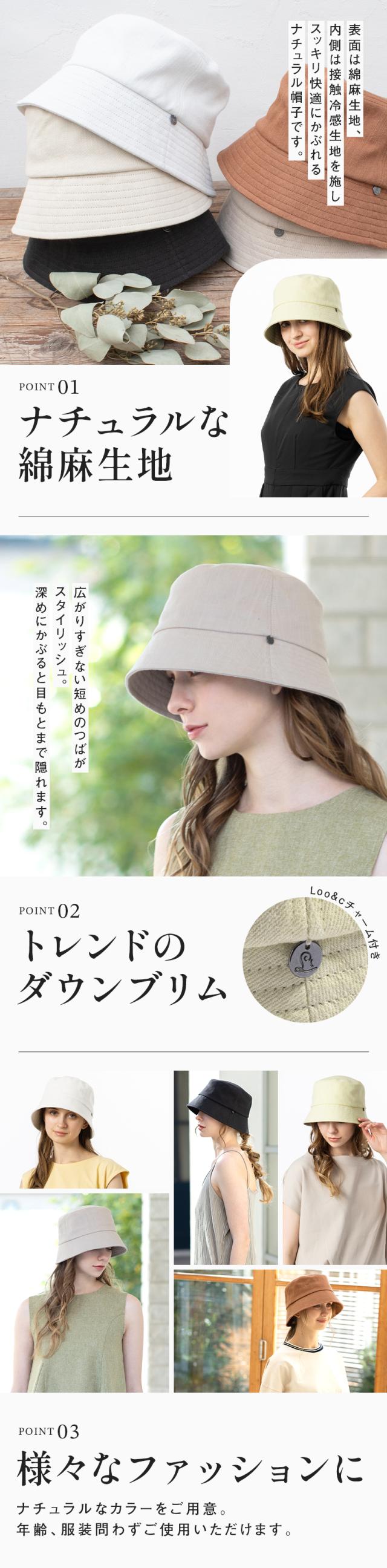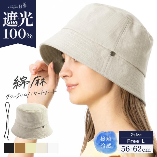 綿麻ダウンブリムバケットハット(254)帽子 レディース 大きいサイズ バケットハット バケハ 完全遮光 遮光100% UVカット 日よけ かぶーる日傘(かぶる日傘) 春 夏 春夏 母の日 UV 自転車でもあご紐で飛ばない 旅行 運動会