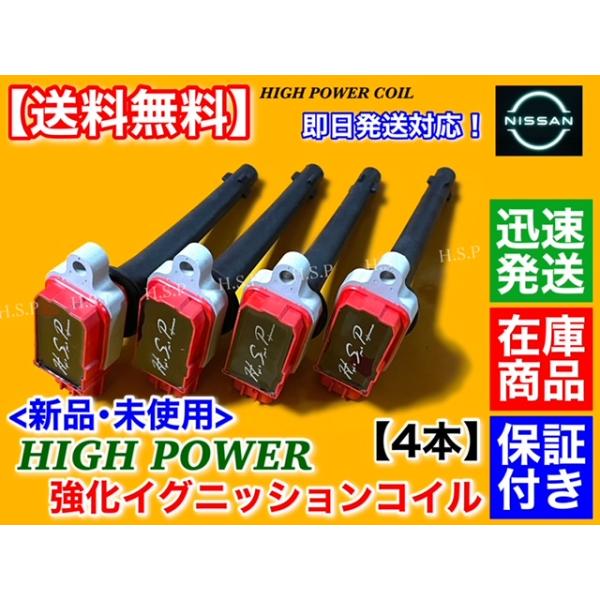 日産 ティーダ JC11 ティーダラティオ SJC11 新品 強化 イグニッションコイル 4本 MR18DE H17.5〜H17.12 22448-ED800 22448-ED80A ハイパワー