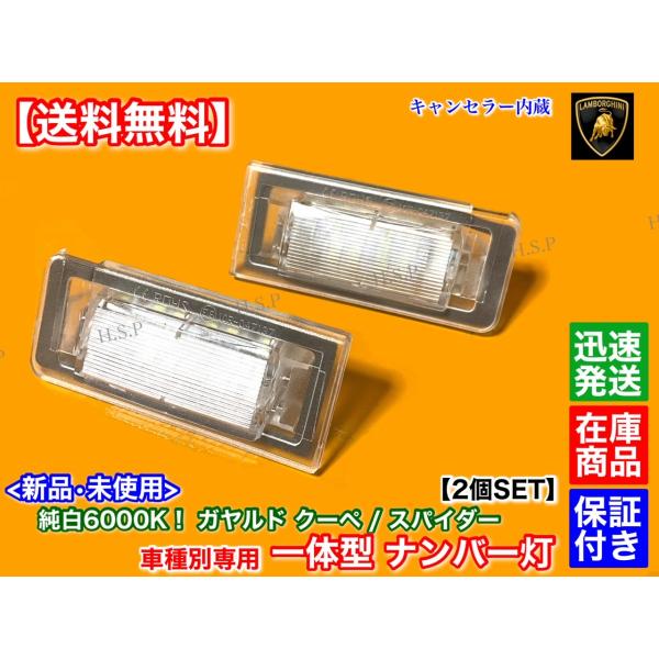 新品 一体型 LED ナンバー灯 ランボルギーニ ガヤルド クーペ スパイダー ライセンスランプ eギア LP560-4 LP550-2 LP570-4 純白 6000K 交換 レンズ