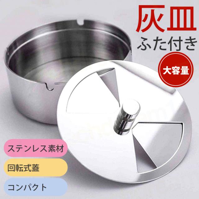 即納 灰皿 ふた付き 大容量 ステンレス素材 卓上 屋外用 回転式蓋 密閉 密閉 卓上 客室 オフィス スタイリッシュ コンパクト 滑りにくい 煙と