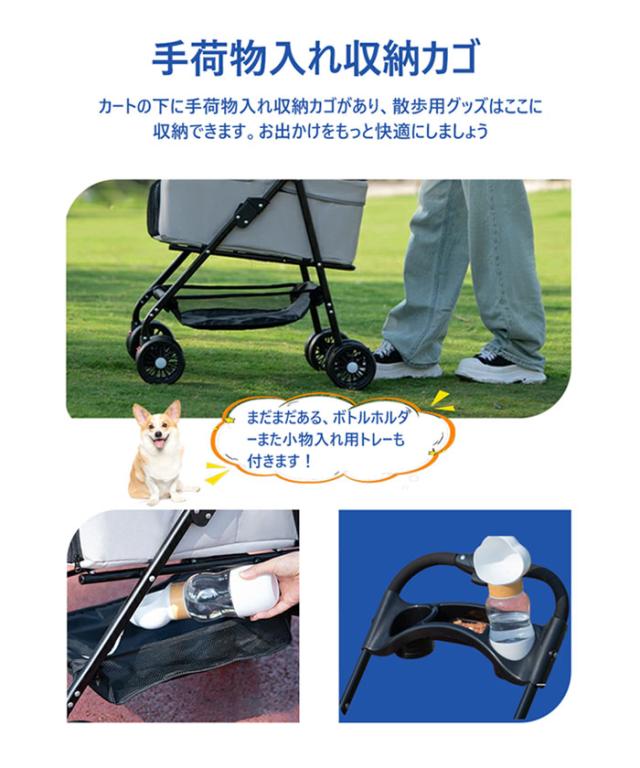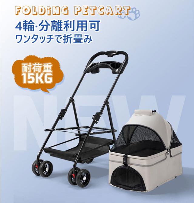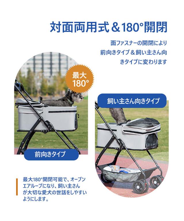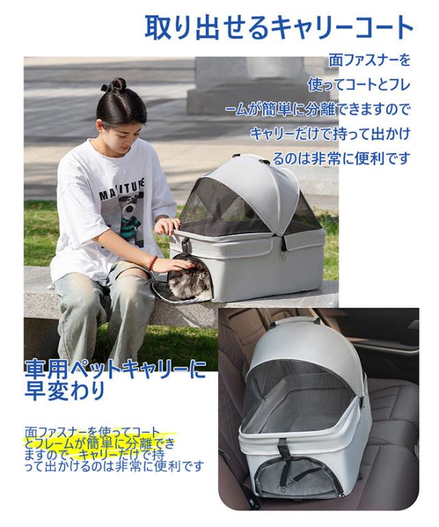「クーポン配布中」【即納】2way ペットカート 分離型 対面式 折りたたみ収納可能 取り外し可能 多頭 小型犬 猫軽量 組立簡単 介護用 ドッグカート フルオーペン 犬 猫 動物 ストッパー付き バスケット 4輪 ペット用品