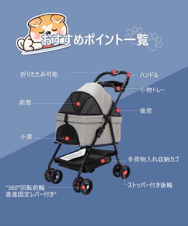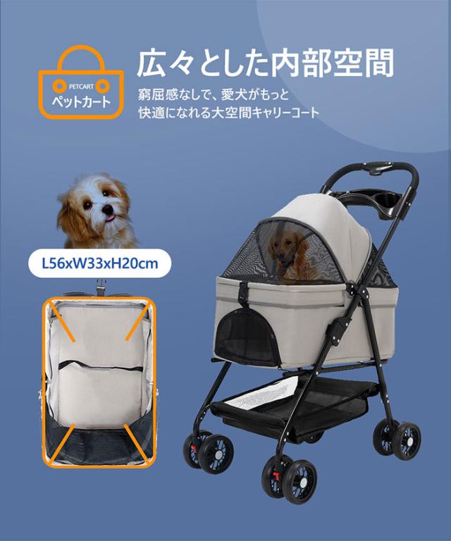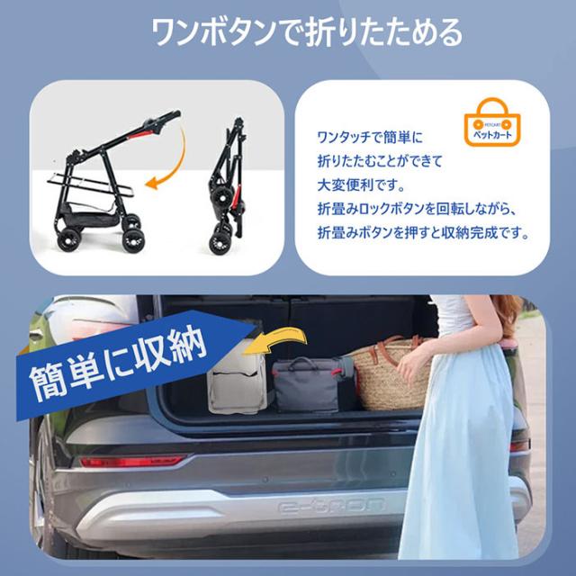 ペットとのお散歩や、混雑したところへの移動などに便利。 折り畳みができるので、収納もコンパクトにできる。