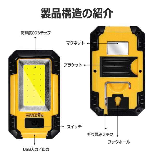 ライト 作業灯 led作業灯 投光器 ワークライト led 充電式 ハンディライト ランタン 30W マグネット COBライト 緊急用 停電用 自動車整備 釣り 夜間作業 夜釣り