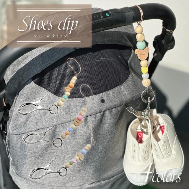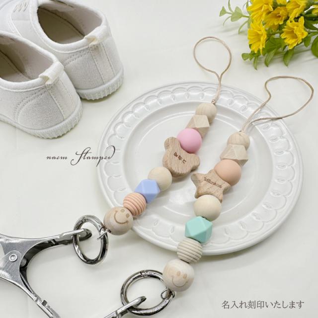 名入れ刻印 ウッドビーズのシューズクリップ にこちゃん ビーズ ウッドビーズ 木製 プレゼント ギフト 出産祝い 記念 名前入り ベビーカー ベビーカークリップ ママ シューズホルダー シューズピンチ ブランケットクリップ ベビーカークリップ ベビーカーフック 便利グッズ