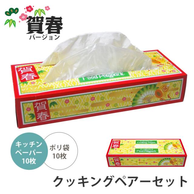 | ポリ袋 キチンペーパー セット クッキングペアーセット 賀春バージョン 便利 キッチン 台所 イベント 景品 ノベルティ 行事 くじ ガラポン クッキングペアーセット 賀春 |