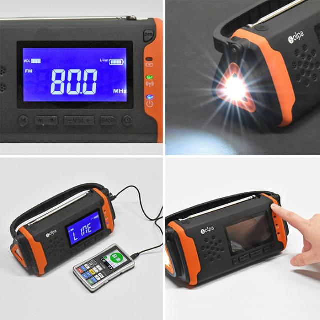 手回し・ソーラー・USBの3WAY充電、スマホ充電も可能な「もしも」に頼れる1台です。