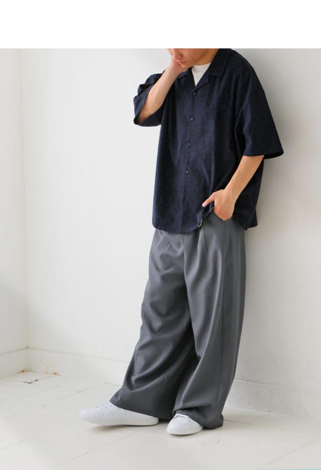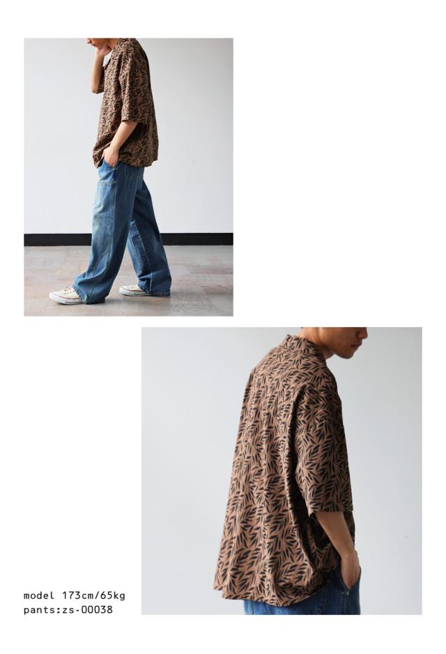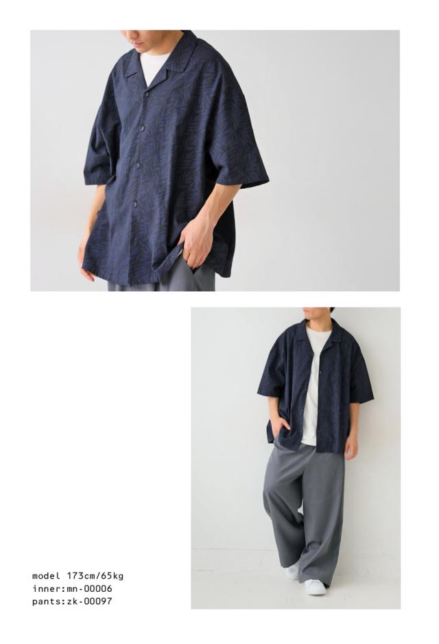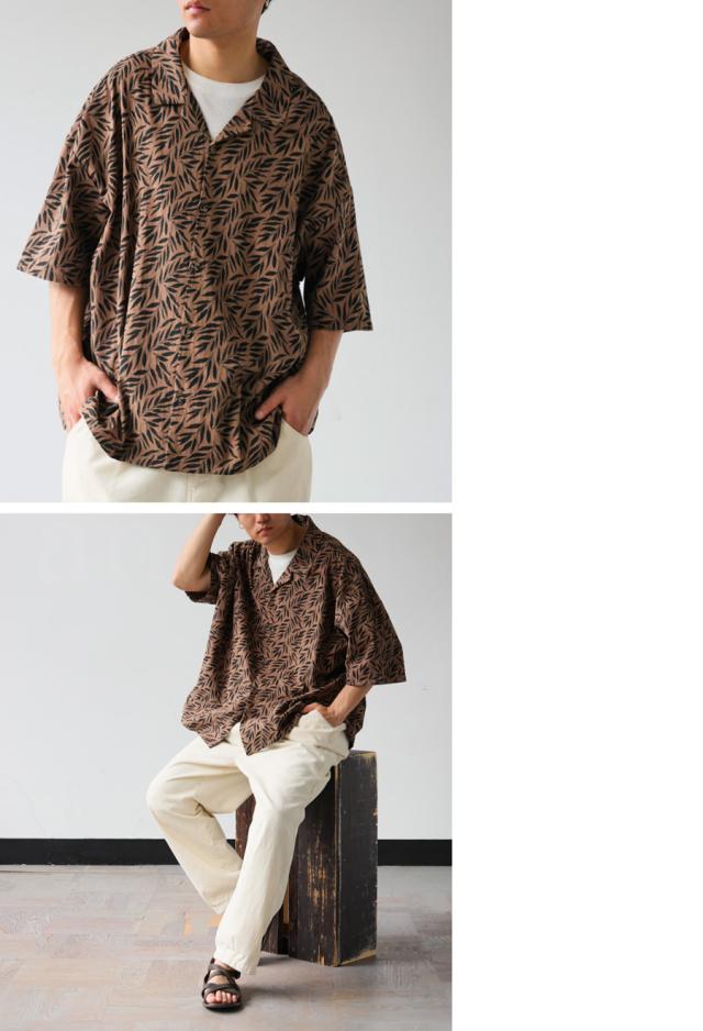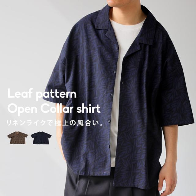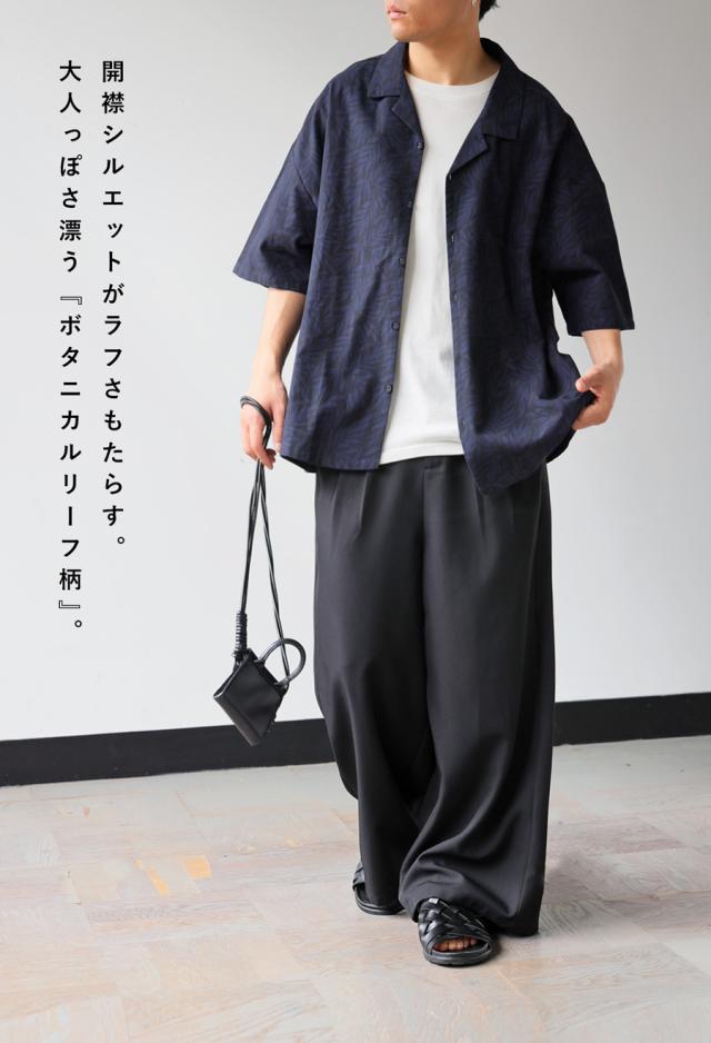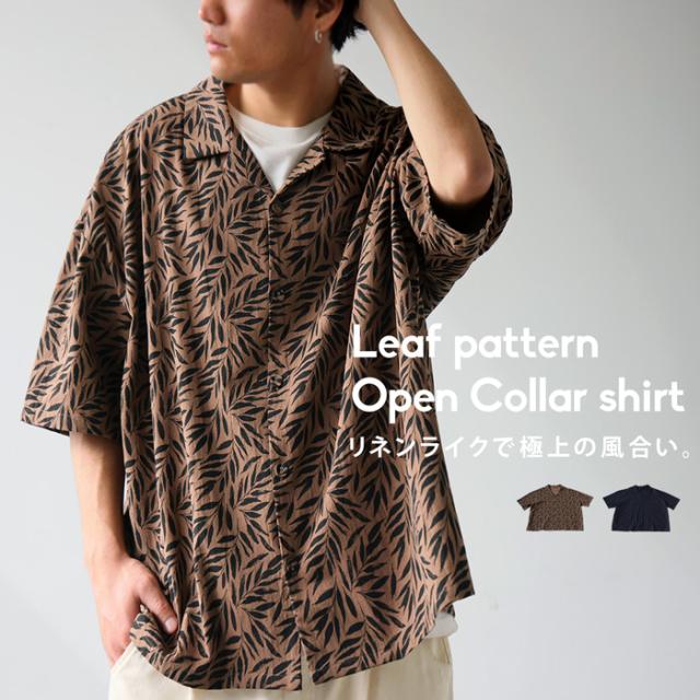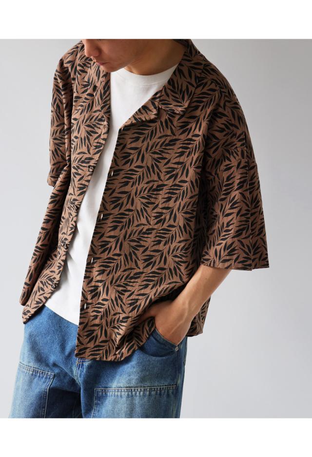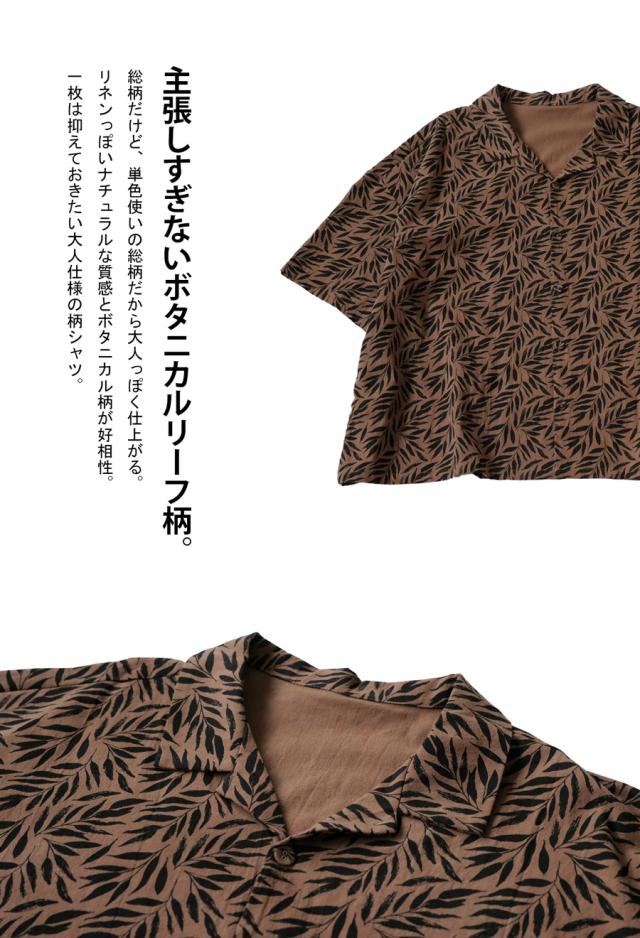 軽い羽織感覚でも着られる、ボタニカルなリーフ柄が魅力の開襟シャツ。