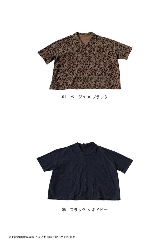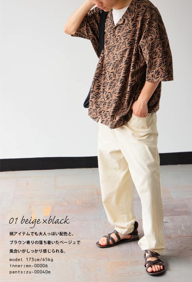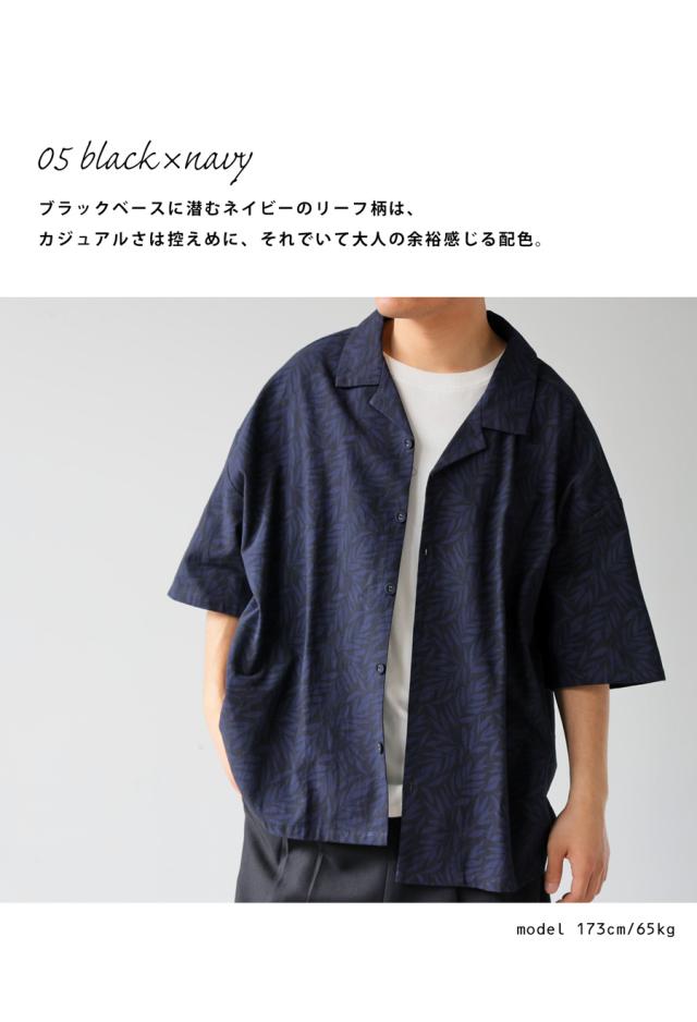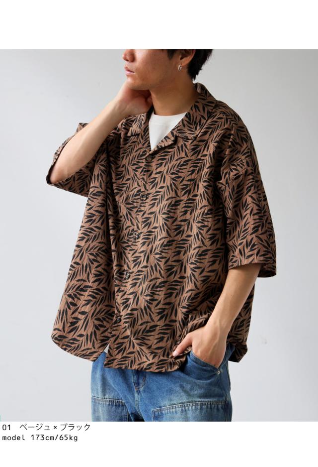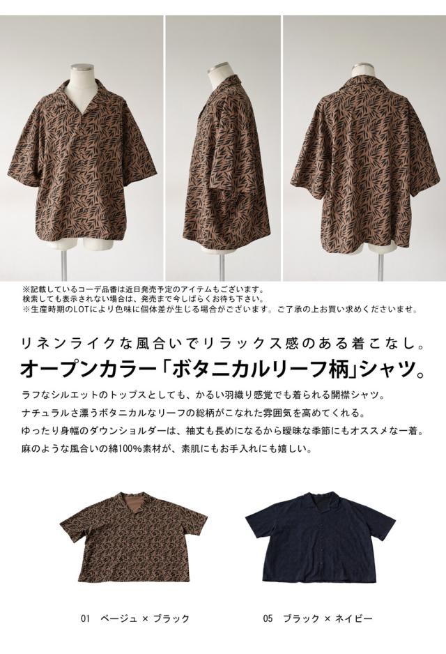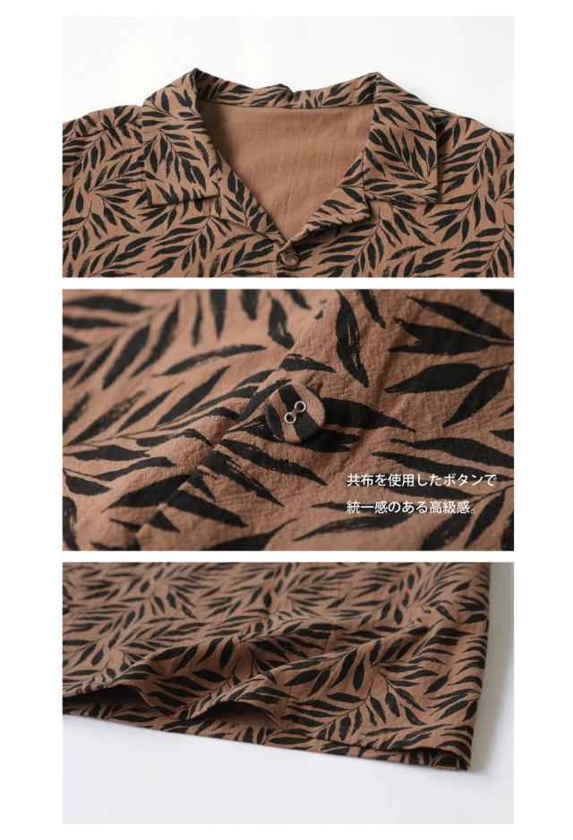 my-00011z 五分袖 綿100 ボタニカルリーフ柄 柄 柄シャツ 開襟 オープンカラー ブラウス ゆったり きれいめ 高級感 ナチュラル 総柄 綿 コットン カジュアルシャツ 大きめ