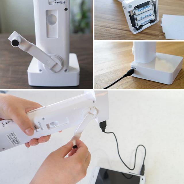 | 情報(AM/FMラジオ)灯り・スマホ充電も! 手廻し充電、乾電池、USB電源が使えます。 |