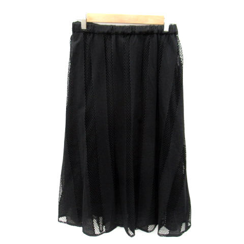 【中古】ダブルクローゼット フレアスカート ロング丈 ストライプ柄 メッシュ ペチコート付 ブラック ■MO レディース