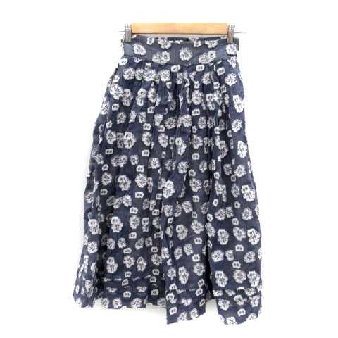 【中古】ジルバイジルスチュアート フレアスカート ギャザースカート ロング丈 花柄 S ブルー ■MO レディース