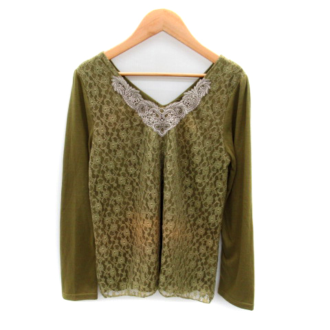 【中古】アクシーズファム axes femme カットソー 長袖 Vネック レース 刺繍 M カーキ /SY36 ■MO レディース