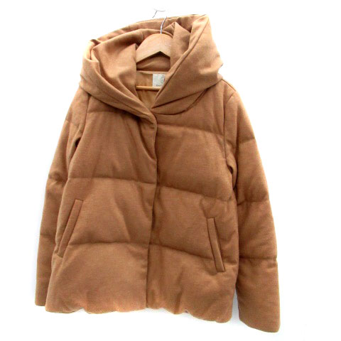 【中古】B&Y ユナイテッドアローズ ダウンジャケット ミドル丈 フード付き ウール混 S 茶色 ブラウン レディース