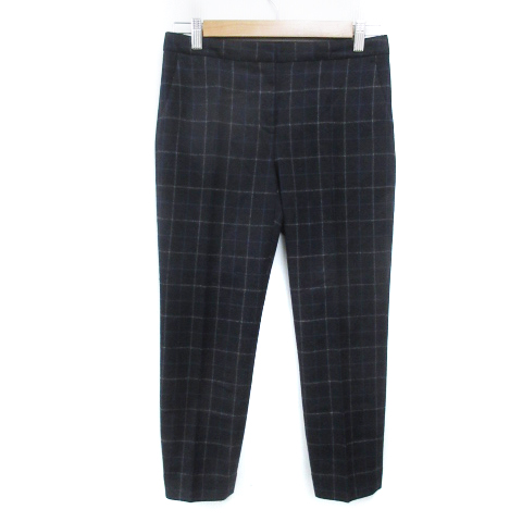 【中古】セオリー スラックスパンツ テーパードパンツ アンクル丈 ウール ウィンドウペン柄 0 黒 白 レディース