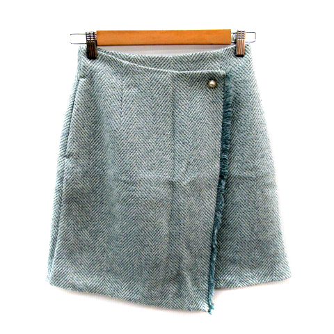 【中古】ジルバイジルスチュアート 台形スカート ラップスカート風 ヘリンボーン柄 ウール混 M 水色 レディース