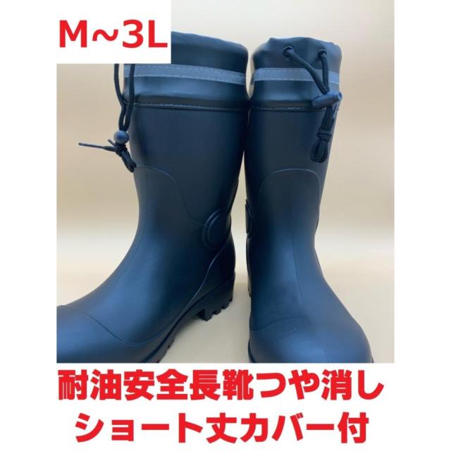耐油安全ショート丈長靴 つや消し黒 M〜3L PVC長靴 セーフティブーツ 鋼鉄先芯 抗菌 防臭 反射カバー付 ブラック 土木建築 3E CB-330