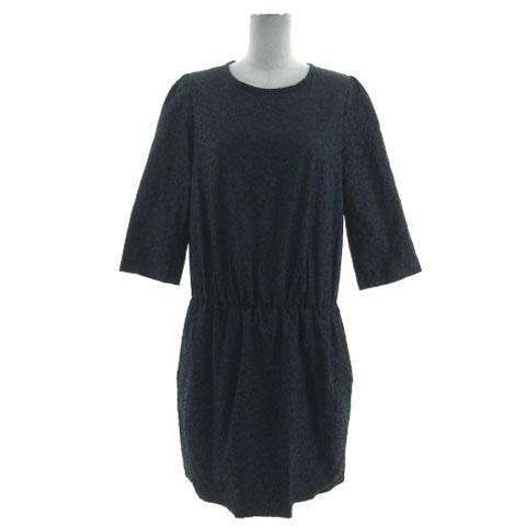 【中古】green label relaxing ユナイテッドアローズ ワンピース 七分袖 ひざ丈 ウエストゴム 日本製 総柄 紺