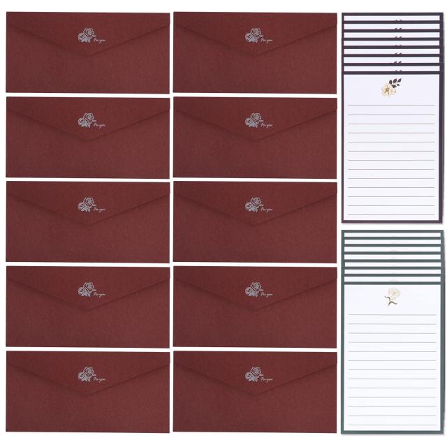 レターセット おしゃれ 大人 シンプル 封筒10枚 手紙16枚 便箋セット お洒落 高級大量 セット 招待状 結婚式 お祝い 挨拶状 (レッド For