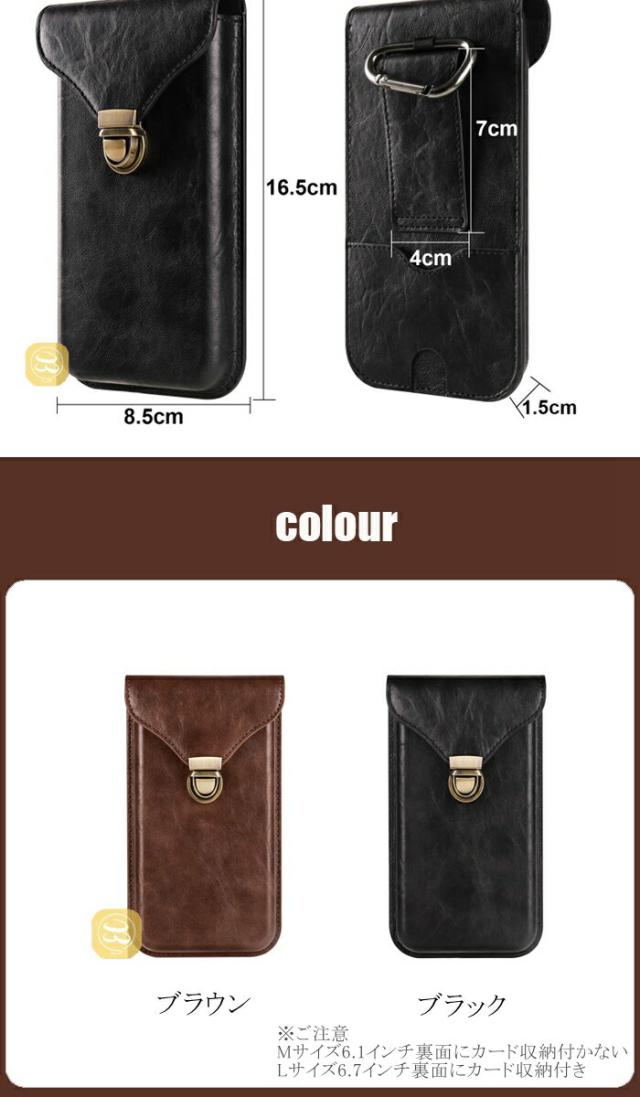 Lサイズ 6.7インチまでの携帯収納可能(外寸約8.5cmX16.5cm)※裏面にカード収納付き