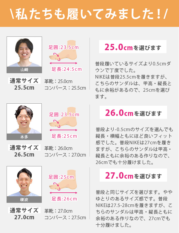 甲高、幅広の方→「0.5cm大きめ」