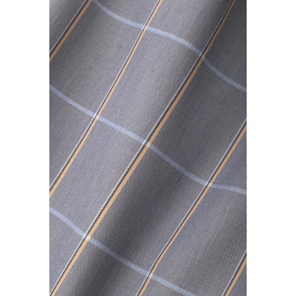 少しのハリ感と落ち感を併せ持つ先染めのボイルツイル素材です。細かいモノトーンの千鳥チェックとベージュとブルーを掛け合わせたベースのキャッチになるチェック2色展開です。