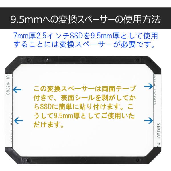 7mm厚2.5型HDD/SSDを9.5mm厚として使用するためのスペーサー