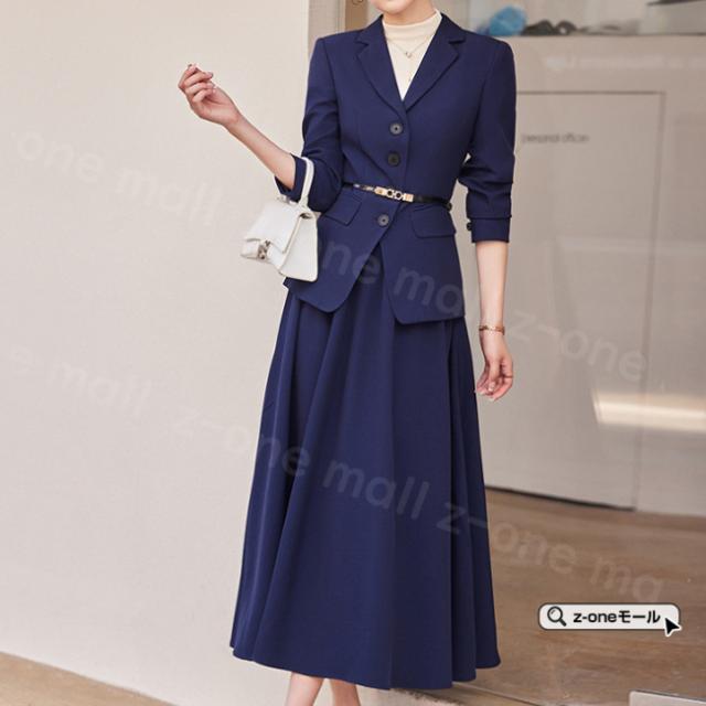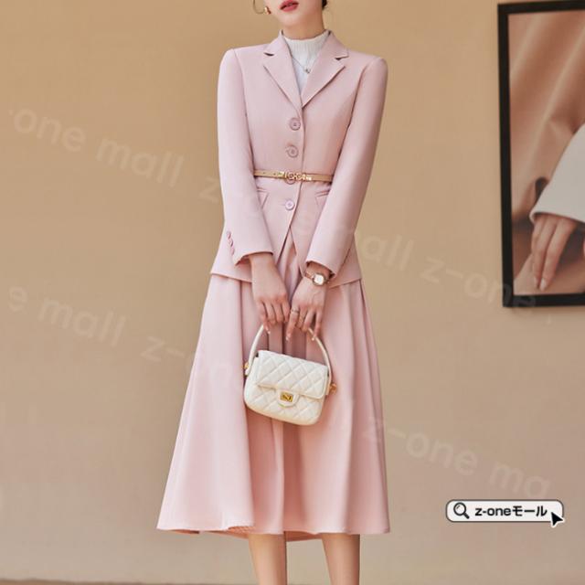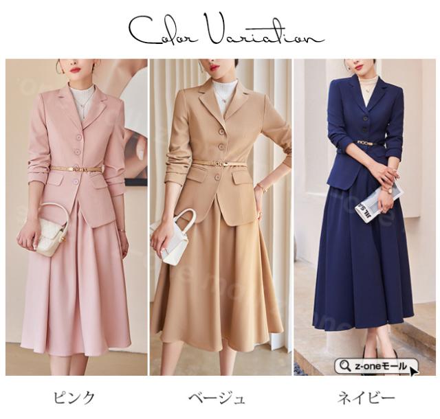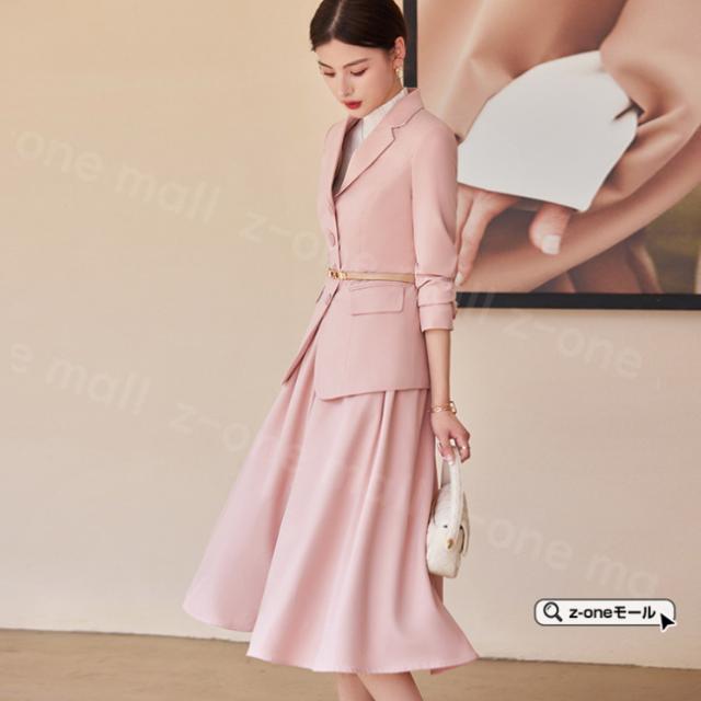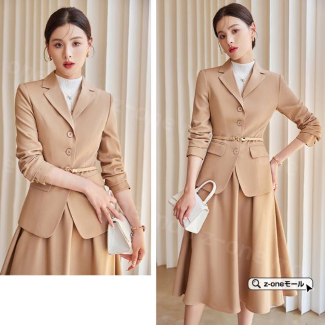 <500円OFFクーポン付き>セットアップ ジャケット+スカート 2点セットスーツ 春新作 送料無料 レディース 無地 洋服 上下セット ビジネス フォーマル オフィス 通勤 面接 OL お洒落 上品 入学式 入園式