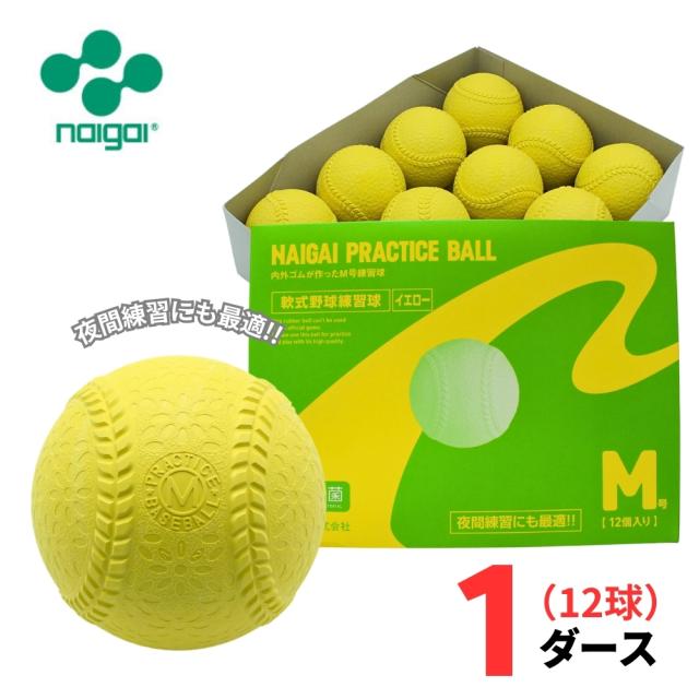 【練習球】ナイガイ 軟式野球 プラクティスボール M号 (イエロー) 1ダース(12球) 一般・中学生向け M球 練習球 ラッピング不可