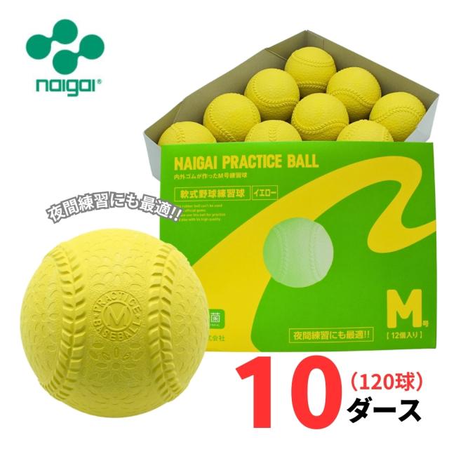 【練習球】ナイガイ 軟式野球 プラクティスボール M号 (イエロー) 10ダース(120球) 一般・中学生向け M球 練習球 【抗菌】【送料無料】