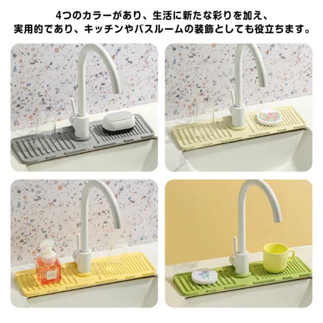 | シリコン素材で水切りマットは洗面台の上に密着してズレにくく、食器乾燥マットと同様に、蛇口吸収マットは、蛇口の飛び散りや漏れからキッチンカウンター上の水汚れを防ぎます お手入れは中性洗剤を含ませたスポンジで洗います。布製の水切りマットより抗菌、カビにくい、衛生で便利です。 キッチンに高級感を加え、これらのシリコン蛇口のスプラッシュで家をリフレッシュします。 4つのカラーがあり、生活に新たな彩りを加え、実用的であり、キッチンやバスルームの装飾としても役立ちます。 | |