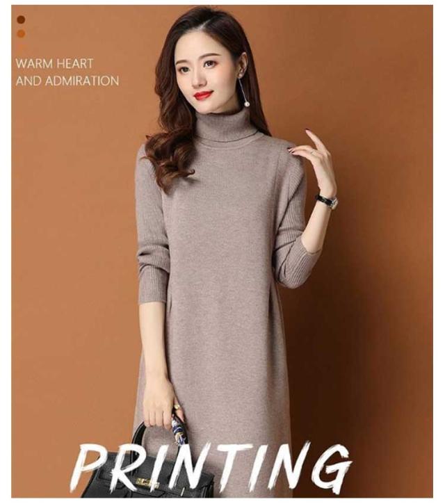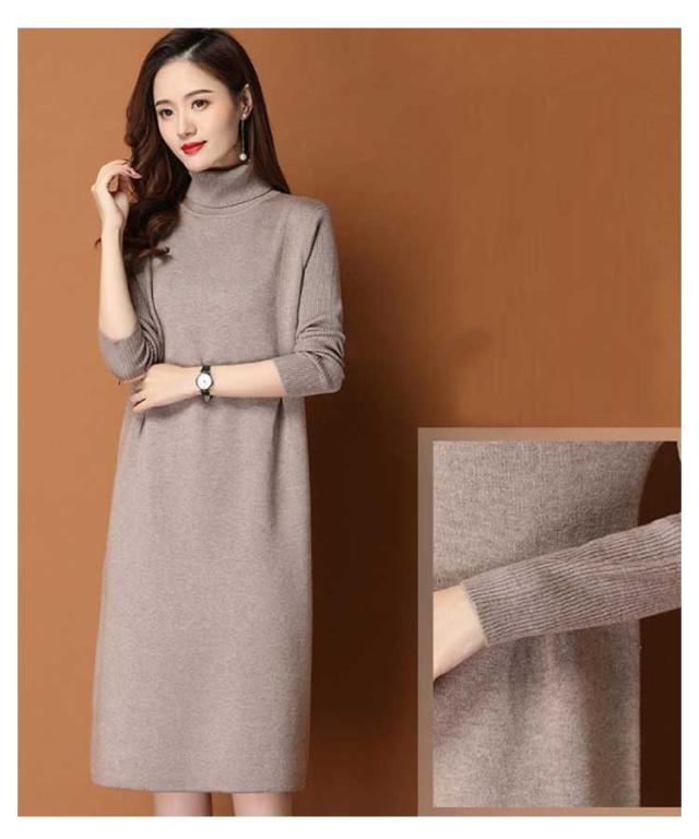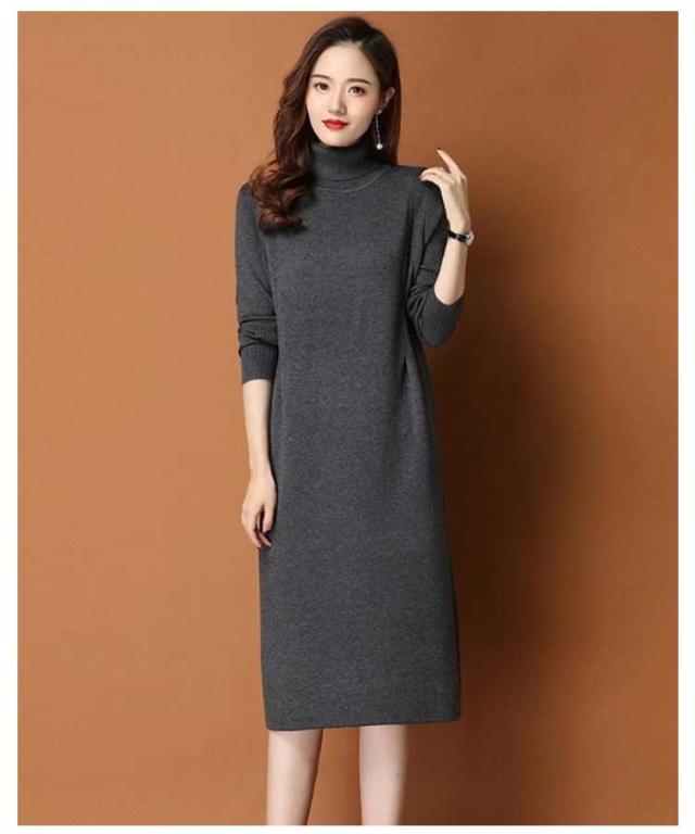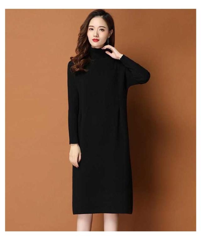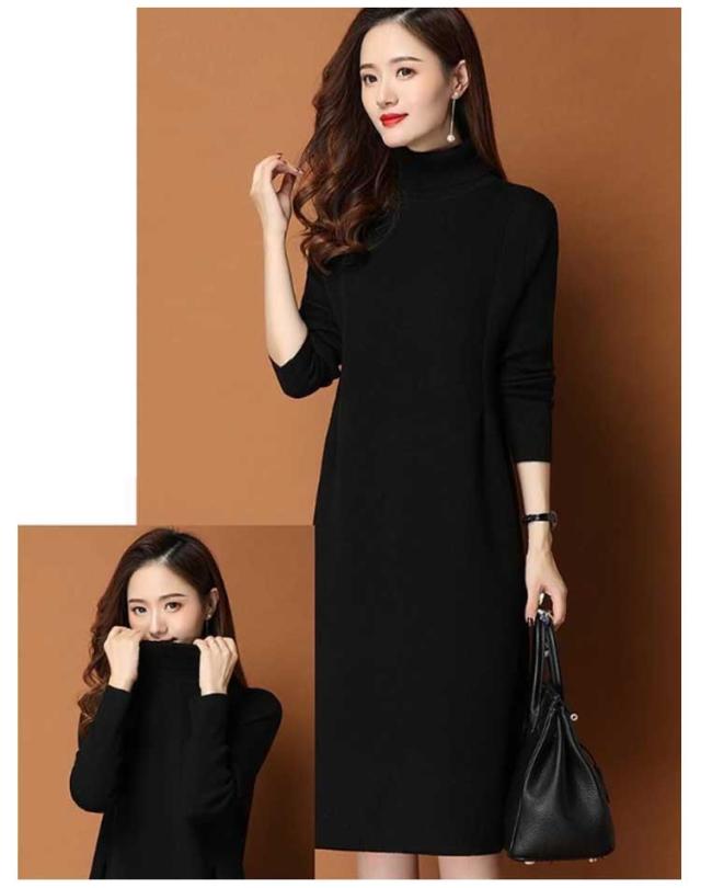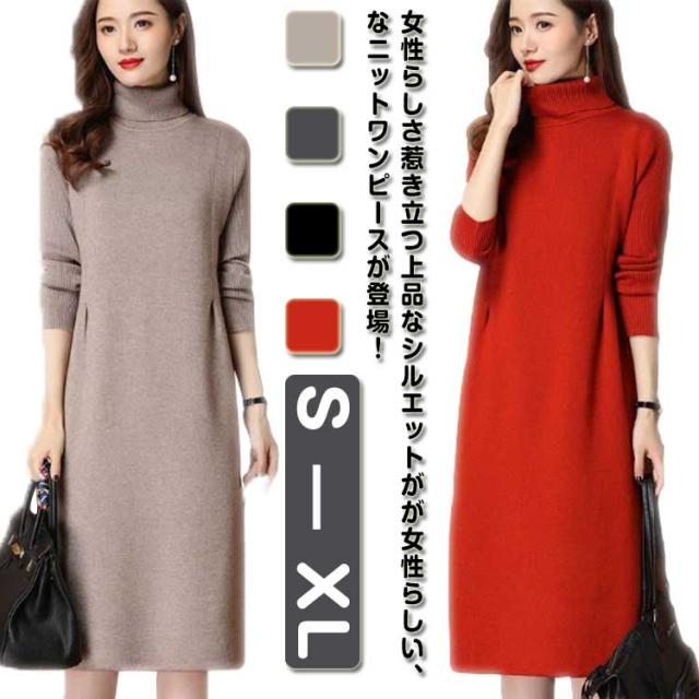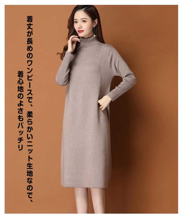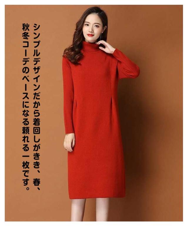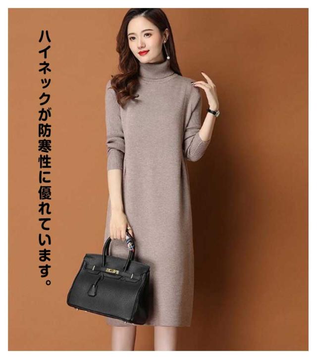ワンピース レディース 秋冬 春 ニットワンピース ひざ丈 ワンピース ニット ニットワンピ 大きいサイズ 膝丈 ハイネック 長袖 無地 体型カバー オシャレ チュニック カットソー 20代 30代 40代
