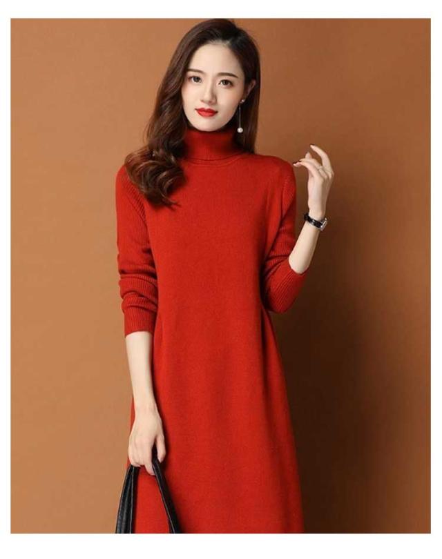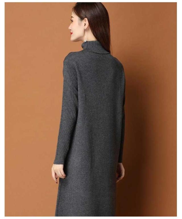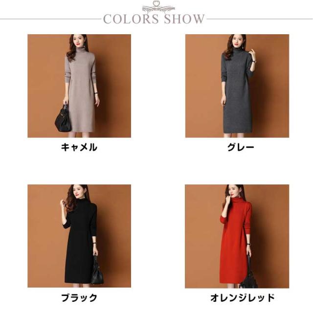 | 女性らしさ惹き立つ上品なシルエットがが女性らしい、なニットワンピースが登場! ハイネックが防寒性に優れています。 着丈が長めのワンピースで、柔らかいニット生地なので、着心地のよさもバッチリ シンプルデザインだから着回しがきき、春、秋冬コーデのベースになる頼れる一枚です。 | |