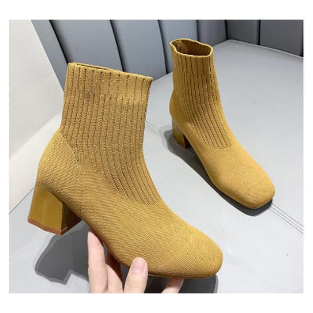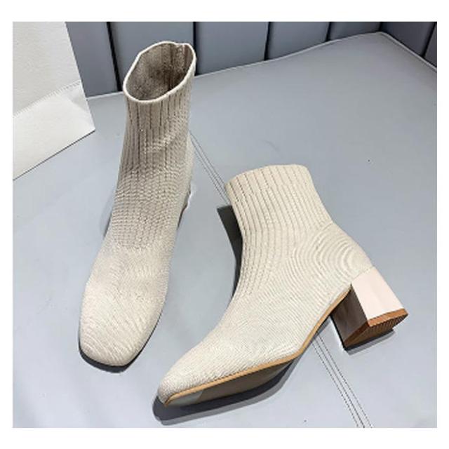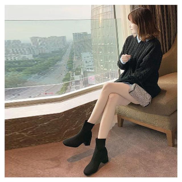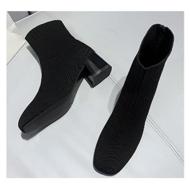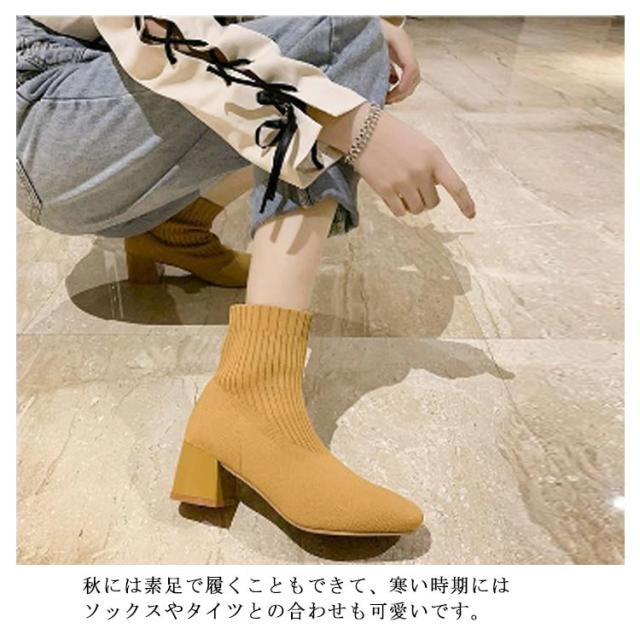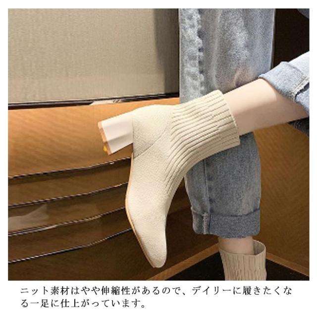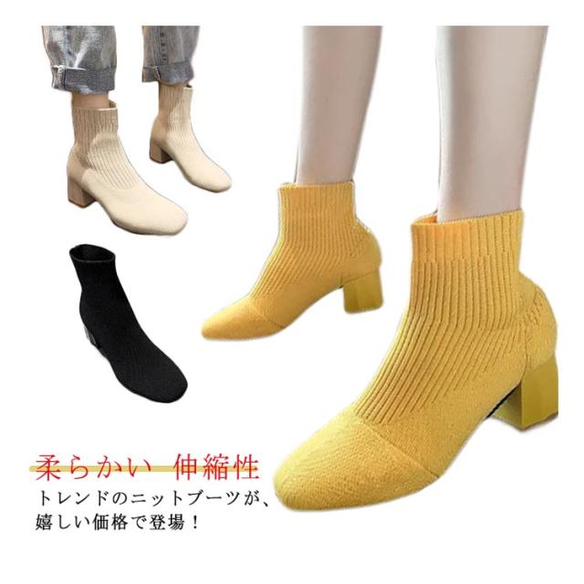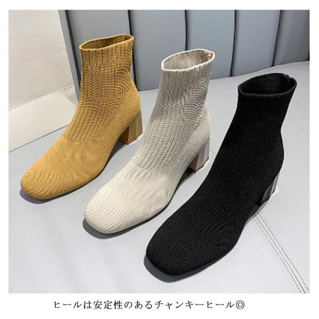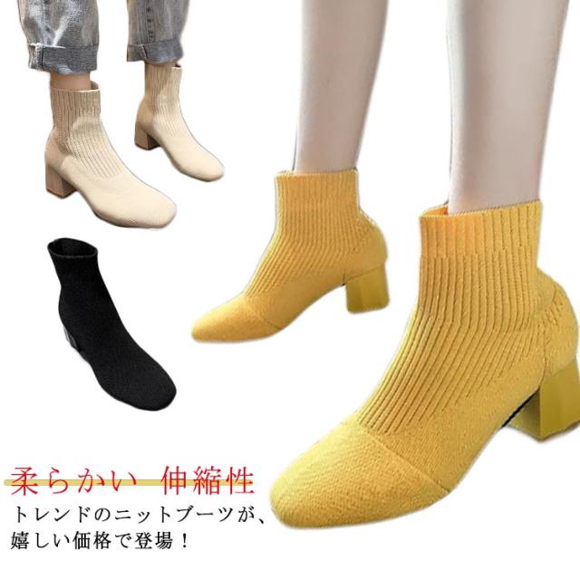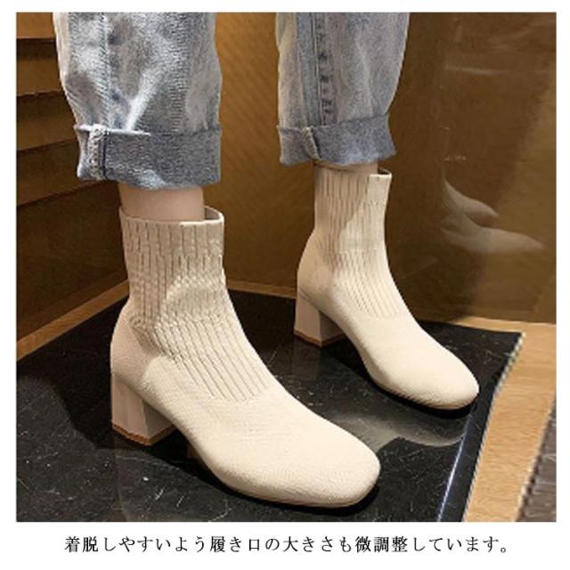 おしゃれ 秋冬 痛くない ソックスブーツ ブーツ 靴 スクエアトゥ ブーツ シューズ 美脚 歩きやすい レディース リブニット ストレッチブーツ ショートブーツ フィット感 ローヒール チャンキーヒール ソックスブーツ 靴 柔らかい 伸縮性 通勤
