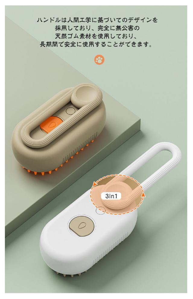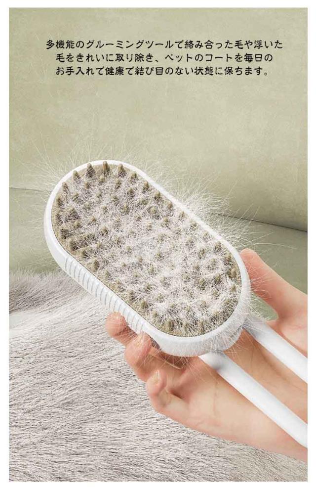 | 【蒸し猫ブラシ】【3in1】【USB充電式】 ミスト機能で静電気を防ぎ、抜け毛も散らばらなくなり、毛の汚れや絡まりを取り除き、美しい毛並みに仕上げることができます。 多機能のグルーミングツールで絡み合った毛や浮いた毛をきれいに取り除き、ペットのコートを毎日のお手入れで健康で結び目のない状態に保ちます。 先端が丸いブラシの歯は、ペットの皮膚を傷つけたり刺激したりすることを心配する必要はありません。 猫用の蒸気ブラシには、毛をとかしながら絆を深めるだけでなく、マッサージ機能も充実しており、リラクゼーションをさらに向上させます。 ハンドルは人間工学に基づいてのデザインを採用しており、完全に無公害の天然ゴム素材を使用しており、長期間で安全に使用することができます。 | |