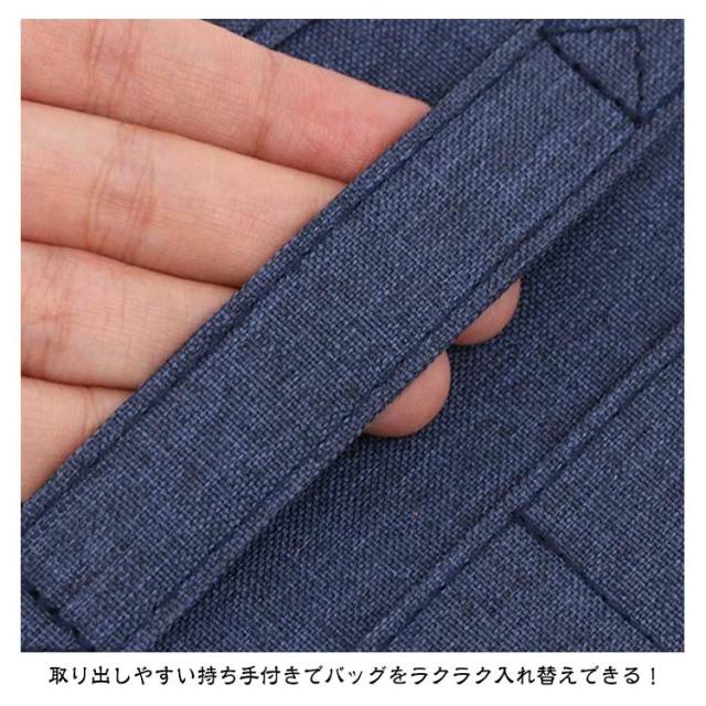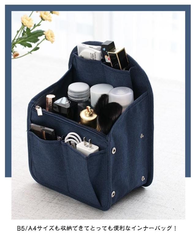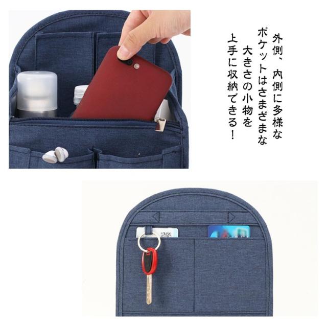 | 【リュックインバッグ】【2サイズ】【整理整頓】【6color】 広めのマチでたっぷり収納できるバッグインバッグ! リュックの中身を整理整頓するのに便利なアイテムです。 自立できるしっかりした素材で整理しやすい。 取り出しやすい持ち手付きでバッグをラクラク入れ替えできる! 外側、内側に多様なポケットはさまざまな大きさの小物を上手に収納できる! B5/A4サイズも収納できてとっても便利なインナーバッグ! 軽量で使いやすいデザインが魅力です。 | |