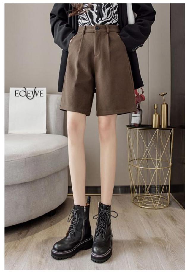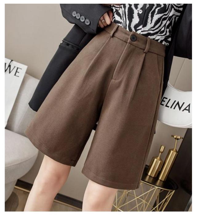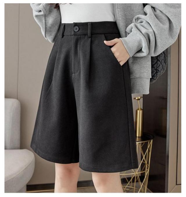 ハーフパンツ ウールタッチ レディース ワイドパンツ フェイクウール ショートパンツ 五分丈 厚手 防寒 暖かい 秋冬 春秋 ワイド パンツ カジュアル シンプル ビジネス シンプル 大人可愛い 秋 冬 大きいサイズ 送料無料