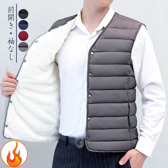 中綿ベストダウンベスト インナーベスト 裏起毛 厚手 Vネック ベストメンズ トップス あったか 防寒ベスト部屋着 防寒 保温 軽量 防寒服 寒さ対策