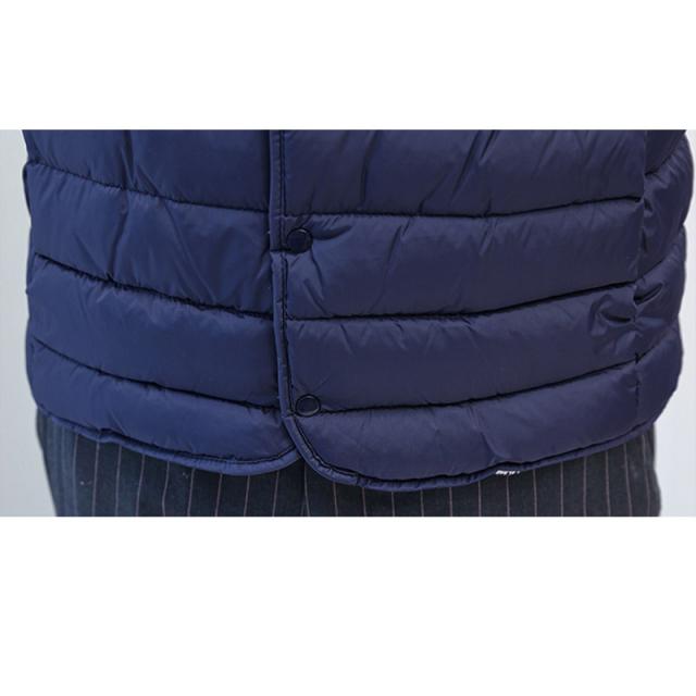 保温性を保ちながらも着ぶくれしない、すっきりとしたフォルムの中綿インナーベスト。